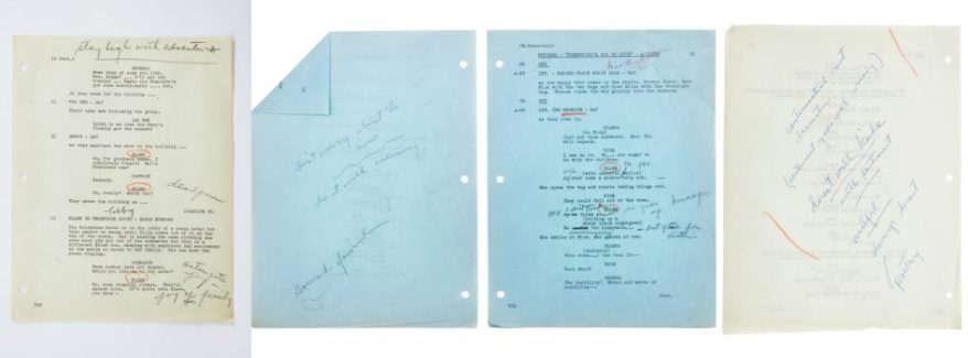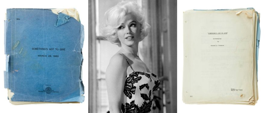 “A Something’s Got To Give mimeographed screenplay by Nunnally Johnson, 149 pages, blue cover dated March 29, 1962 reading ‘Final Confidential For Planning Purposes Only.’ The script, marked final, also dated March 29, 1962, contains notations in Monroe’s hand throughout in pencil and green ink on 18 pages. Some of the notations are from Monroe’s work with a Swedish dialect coach.