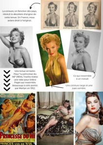 Another interesting detail is the brooch on Marilyn’s blue satin gown, later used again on another costume for Gentlemen Prefer Blondes. The same brooch – or a very similar one – was seen on the waistline of Constance Bennett’s costume for As Young as You Feel (1951), in which Marilyn also played a small part. Furthermore, Gene Tierney also appears to have worn the brooch in another 1951 movie, On the Riviera, and for a publicity photo from the same era.