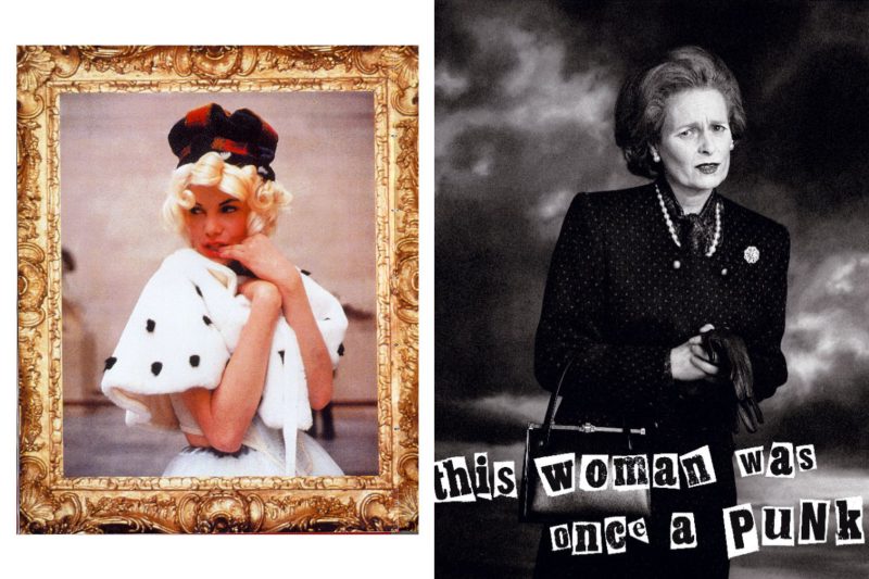 In April 1989, Westwood appeared on the cover of Tatler dressed as Prime Minister Margaret Thatcher. Born in 1926 (the same year as Marilyn), Mrs Thatcher was – like Vivienne – a grocer’s daughter, and in later life, the two women shared both an entrepreneurial spirit and a striking physical resemblance. The similarities ended there, however, as Vivienne went on to become a passionate environmental campaigner. In 2006, she was made a Dame of the British Empire; and in 2012, she was featured in a new version of pop artist Peter Blake’s Sgt. Pepper’s Lonely Heart’s Club Band cover (Marilyn had appeared on the original.)