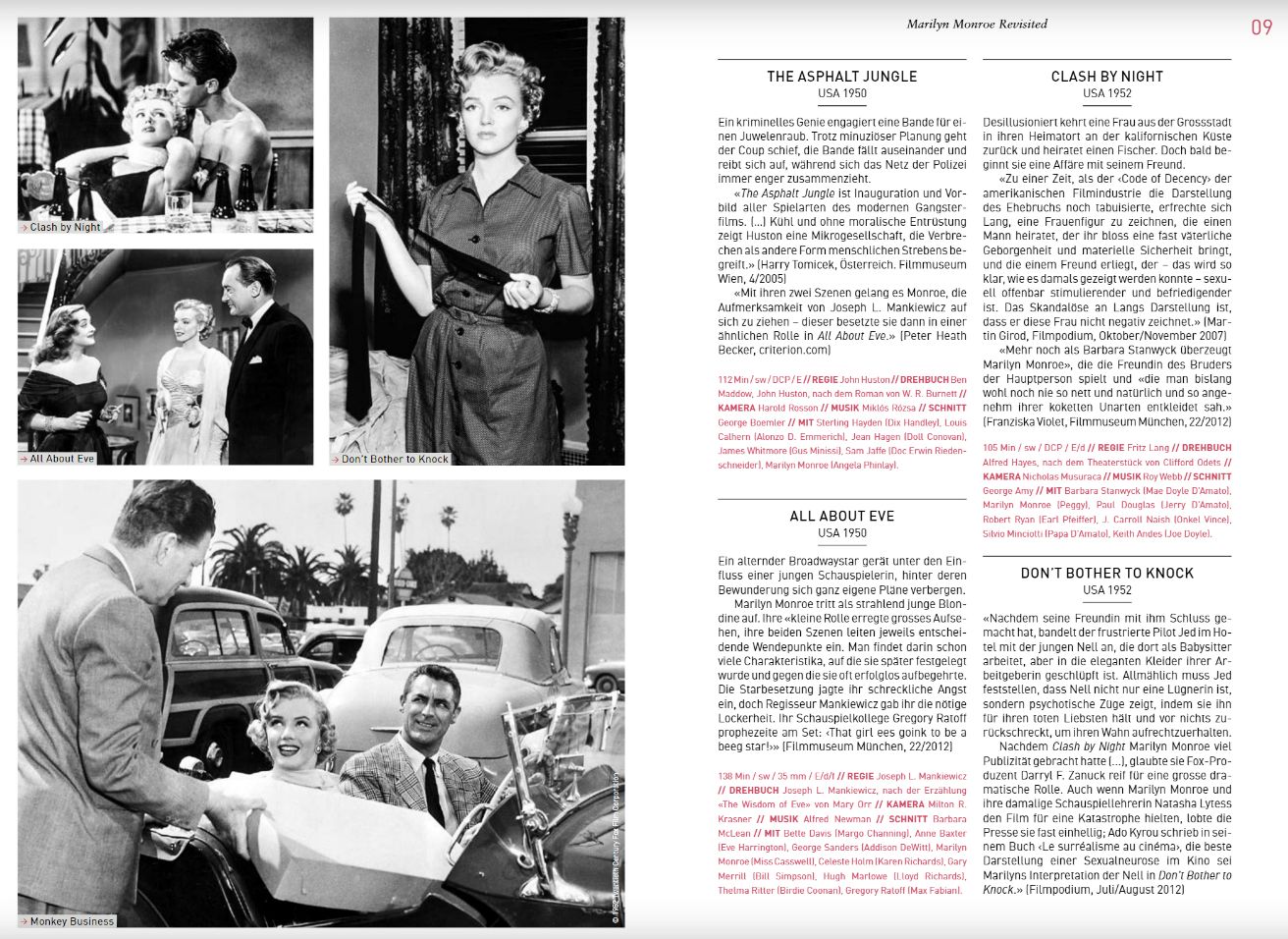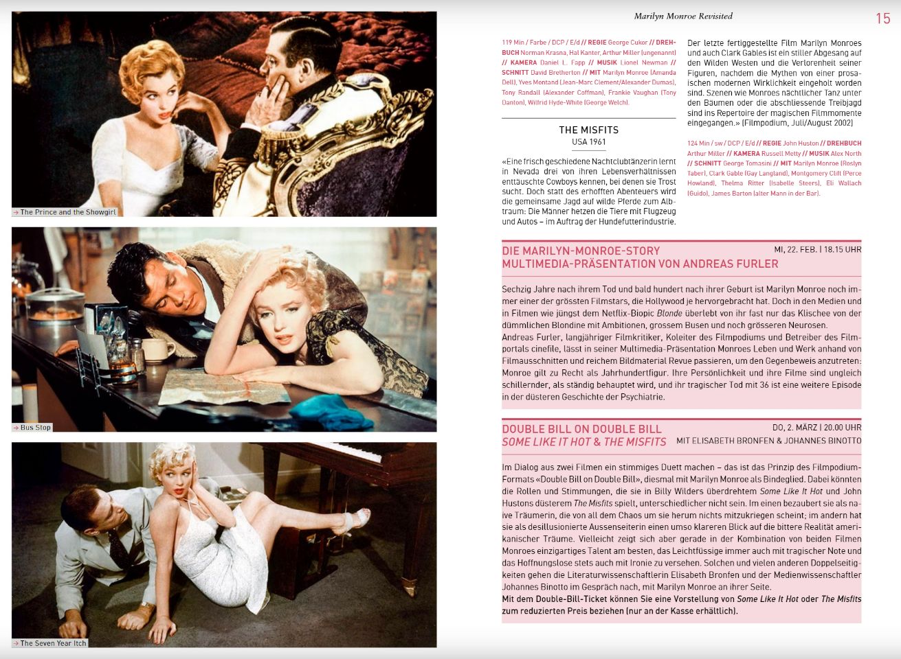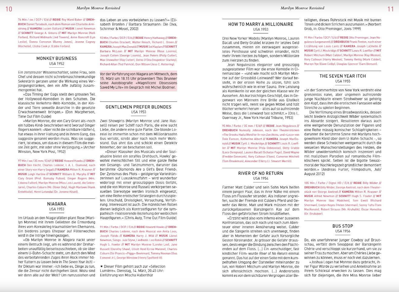 Marilyn is currently being honoured with a big-screen retrospective at the Filmpodium in Zurich, Switzerland. She also the graces the cover of the current programme (see here), with an essay by the German critic Elisabeth Bronfen (who wrote about Marilyn and other iconic figures in her 2001 book, Diva) and summaries of Marilyn’s movies inside.