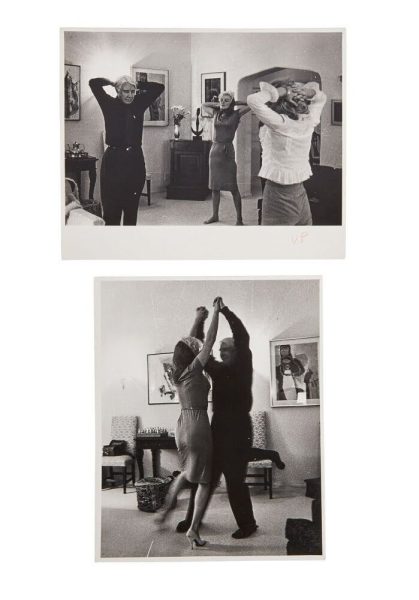 A pair of original black and white photos of Marilyn with poet Carl Sandburg at a Los Angeles party in January 1962, shot by Arnold Newman. – SOLD for $1,950