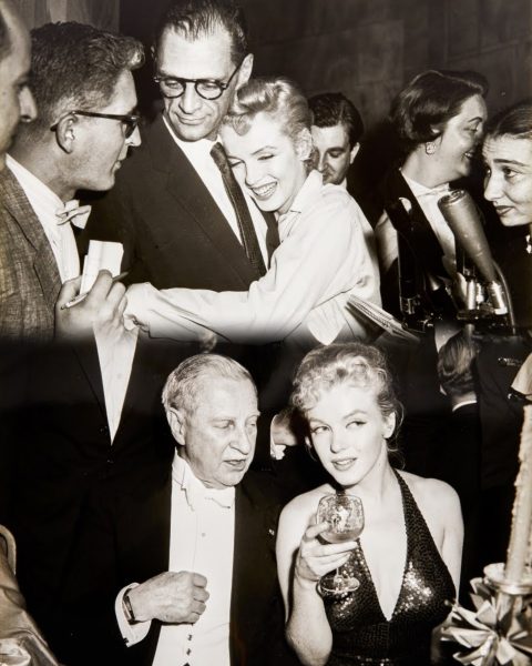 Bottom: Vintage photo of Marilyn at the April in Paris Ball held at the Waldorf-Astoria in New York in 1957. At left is the former US Ambassador to Great Britain, Winthrop W. Aldrich. – SOLD for $455