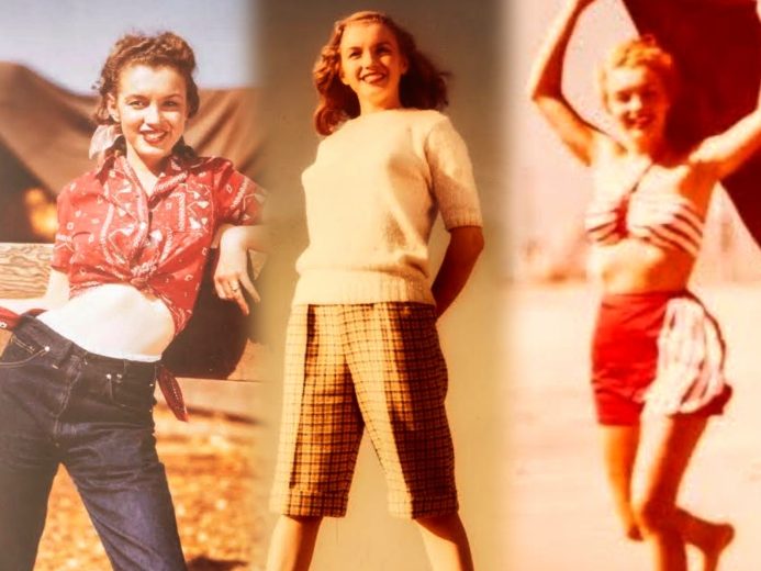 Centre: Vintage photo of Norma Jeane in 1946, shot on Zuma Beach by Joseph Jasgur. – SOLD for $325