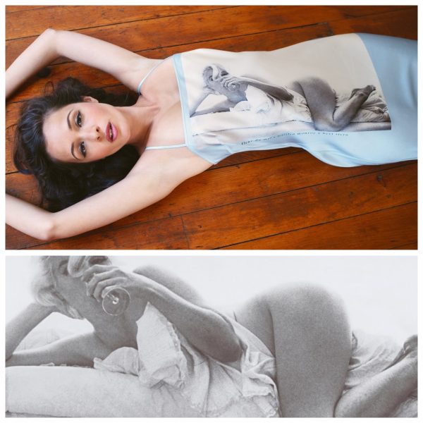 When she inquired with Monroe’s estate about using some of Bert Stern’s imagery for the collection, they said they didn’t have access to it, so she decided to reach out directly to Stern’s estate. ‘We connected with Shannah Laumeister Stern who was Bert Stern’s late wife and runs his estate. She loved the idea and agreed to collaborate and let us use 2 of his iconic images from The Last Sitting. We actually shot the campaign at Stern’s former home and studio in Sag Harbor. It was really special.’