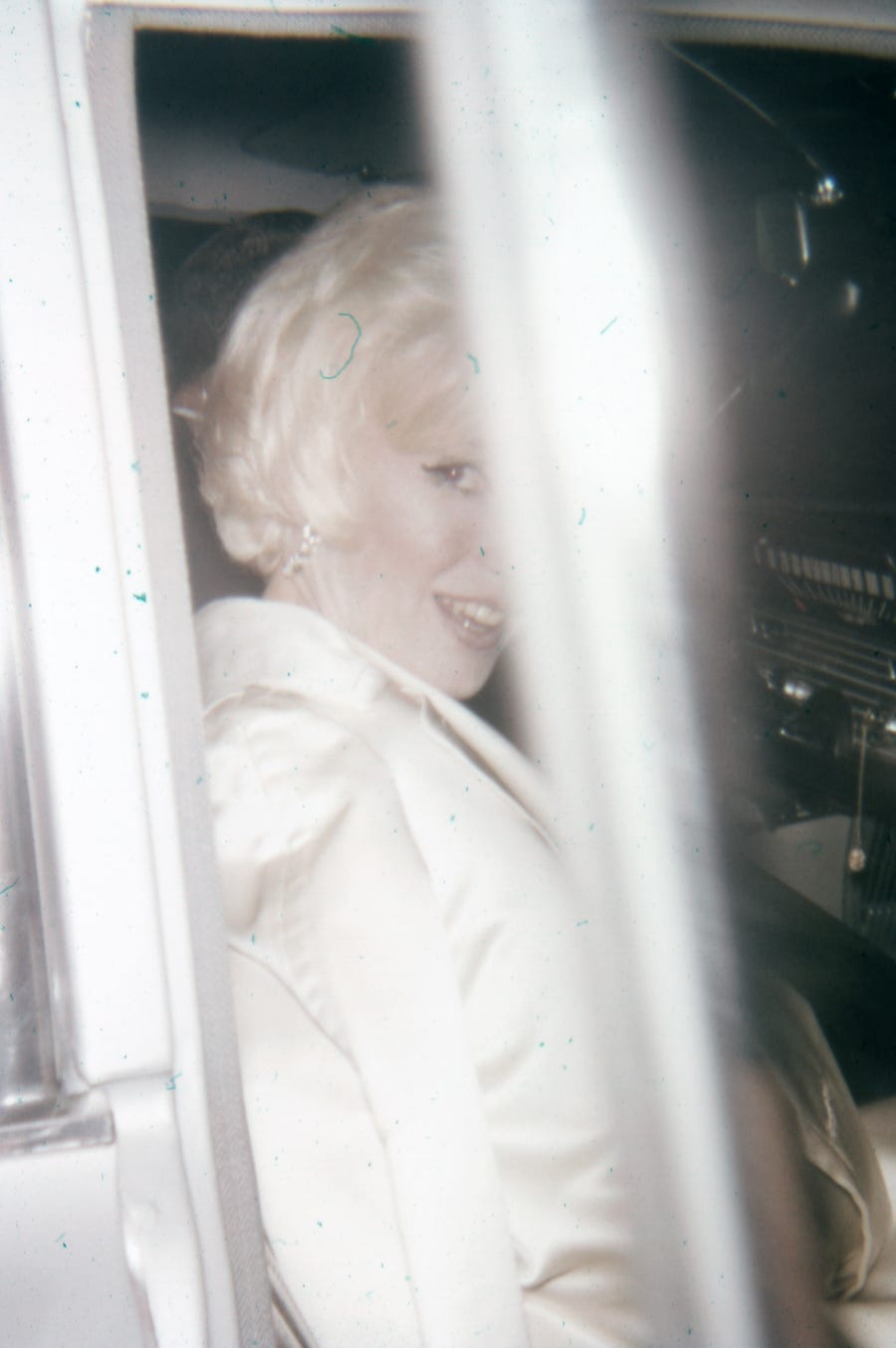 A glimpse of Marilyn Monroe is captured by the photographer as she leaves a dinner party honouring Billy Wilder at the Beverly Hills restaurant Romanoff’s. The handwritten date on the slide is September 10, 1961.