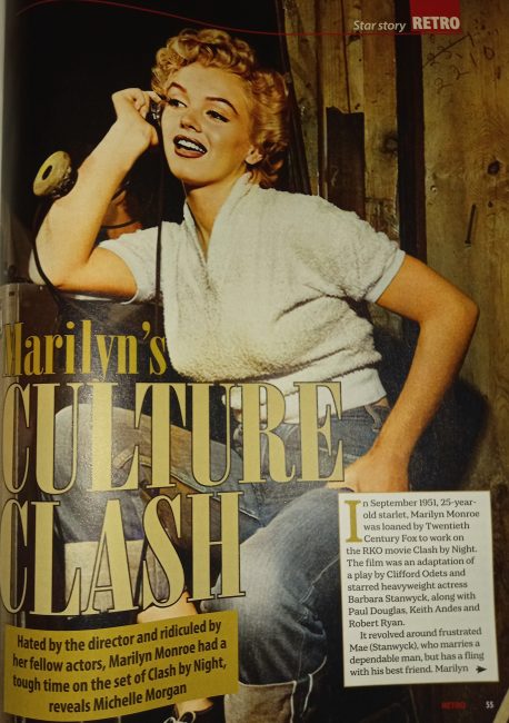 The October issue of UK nostalgia mag Yours Retro (#67, with James Dean on the cover) takes a closer look at two of Marilyn’s best early films. All About Eve (1950), in which she played aspiring actress Claudia Caswell, is an undisputed classic – and, as Simon Button writes, ‘the bitchiest film ever made.’