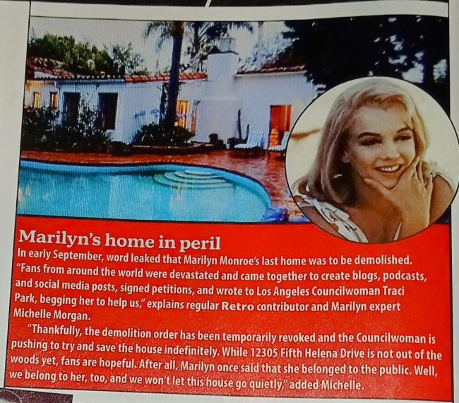 And finally, Michelle Morgan speaks out on the ongoing campaign to save Marilyn’s last home at Fifth Helena Drive in Brentwood, Los Angeles.