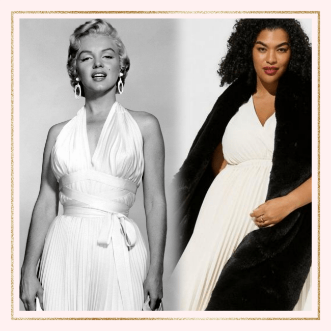 And this ruched wiggle dress recalls the Oleg Cassini original that Marilyn wore while promoting Monkey Business…