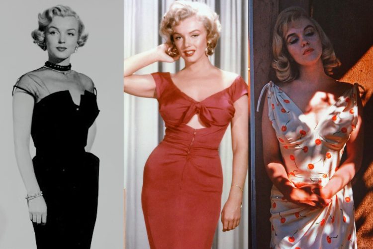 Among the highlights are designs reminiscent of Marilyn’s black net overlay dress from As Young As You Feel; her ‘cutaway dress’ from Niagara; and the cherry dress from The Misfits.