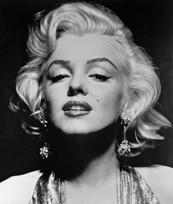 Marilyn appears alongside other movie icons, including Audrey Hepburn, Marlon Brando, James Dean, Brigitte Bardot, and the Magnificent Seven cast; rock stars from Elvis Presley and the Beatles to Mick Jagger, Jimi Hendrix, and David Bowie in The Man Who Fell to Earth; prizefighter Muhammad Ali; and supermodel Kate Moss.