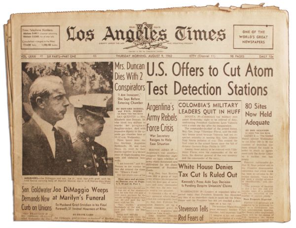 But in 1962, at 36, Monroe died of an overdose of barbiturates at her home in Los Angeles. The L.A. Times reported that DiMaggio flew there from San Francisco as soon as he heard the news.