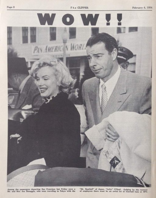 The coverage accelerated in January 1954, in the days leading up to the unannounced wedding. On Jan. 5, the Los Angeles Times reported that Monroe had been suspended by Twentieth Century Fox for failing to show up for work on her next movie, Pink Tights. The reporter speculated on the reasons for her absence, suggesting ‘it could be that she was having so much fun up north with Joe DiMaggio, the former Yankee baseball star, that she simply didn’t feel like coming back to work.’