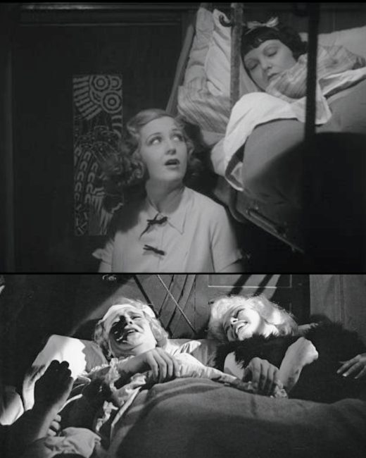 Fanfare d’amour is solidly rooted in the Depression as it follows two desperate musicians, the tall and lanky Jean (Fernand Gravey) and his dumpier pal Pierre (Julien Carrette). A montage shows us how they get gigs by pretending to be qualified for whatever band is fashionable … Anyway, Jean and Pierre’s poverty and desperation are the sole reason they dress up as women to join a woman’s orchestra.