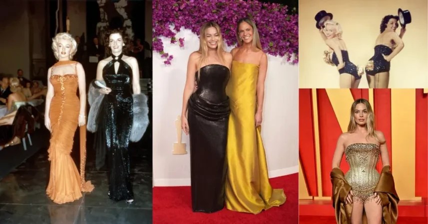 “Our very own Barbie echoed Jane Russell’s sinuous squid-ink sequined gown and even got herself a Marilyn to match her Jane. Now that is dedication to theme. Later, at the Vanity Fair after-party, Margot changed into a gilded Mugler corset, which I couldn’t help but think (read: fantasise) was another nod to Howard Hawks’ frothy film for all us Classic Hollywood nerds, we see you, Margot!”