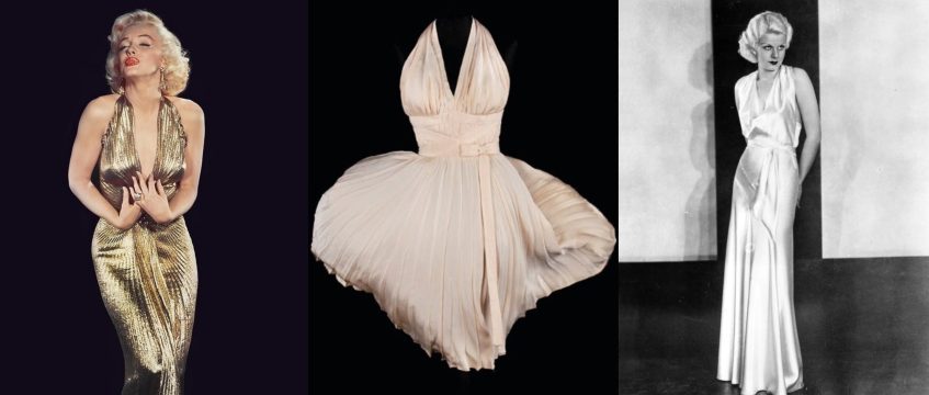 Sydney’s gown – designed by Marc Bouwer, and originally worn by Angelina Jolie at the 2004 Academy Awards – also recalls another of Marilyn’s iconic Travilla looks, the gold lamé dress she wore to the Photoplay Awards in 1953; as well as the white silk gowns that were a style staple for the original blonde bombshell, Jean Harlow.