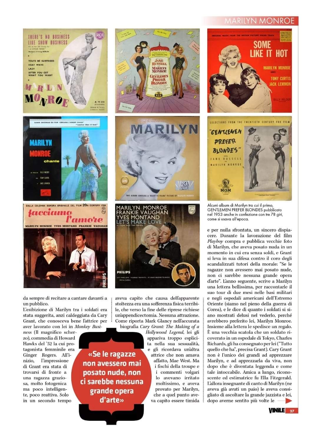 As the ‘vinyl revival’ continues to boost global music sales, Marilyn is featured in the current issue of the Italian magazine, VINILE (#42, with Lucio Battista on the cover.) Inside, Susanna Schimperna’s 6-page feature explores Marilyn’s recording career – and some of her most collectible vinyl releases.