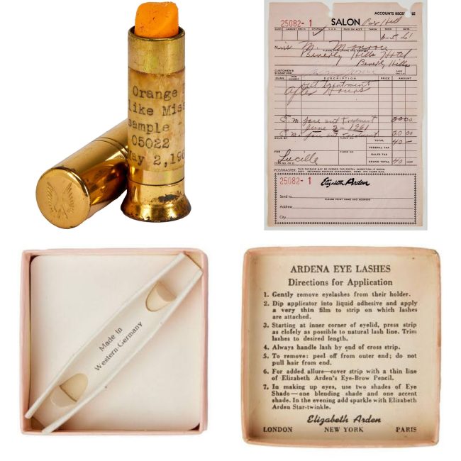 Clockwise from top left, a selection of Marilyn-owned items from Elizabeth Arden’s cosmetics company.