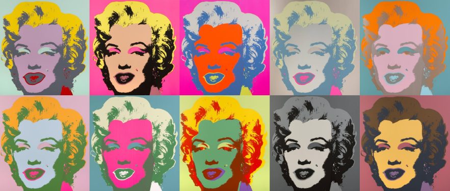 A portfolio of 10 Sunday B. Morning prints of Andy Warhol‘s art featuring Marilyn Monroe. The verso of each print features an embossed stamp certifying that it was published by Morning. The pop artist created his first portraits of Marilyn – based on a 1952 photo by Gene Kornman, promoting Niagara – in the weeks following her death in August 1962. (The original Sunday B. Morning prints were made in 1967, but the company continued making unauthorised prints after the first limited run.)