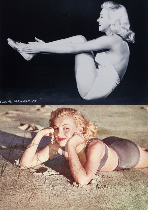 Above, at top: Original 1948 negative from Marilyn’s yoga layout with Edward Cronenweth while under contract at Columbia Pictures.