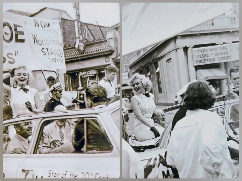 At left: Oversize photo taken by Manfred Kreiner on March 18, 1959, as Marilyn arrived at Chicago’s Midway Airport to promote Some Like It Hot.