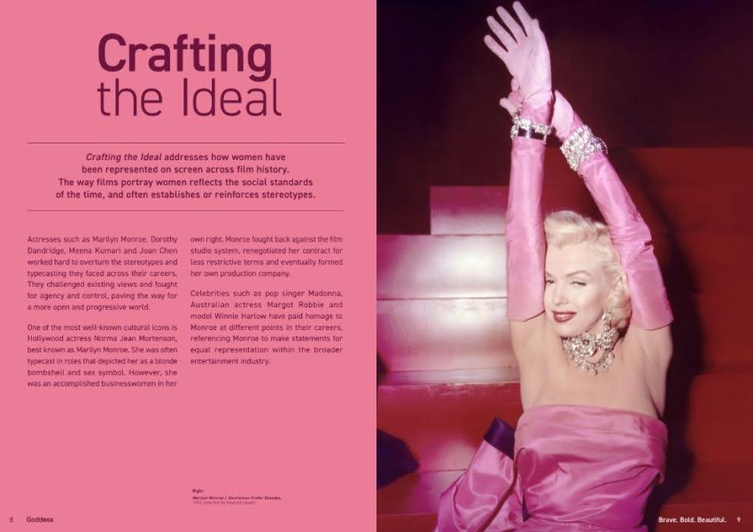 “Perhaps aptly so, the exhibition begins with a look at the impact of Marilyn Monroe—who was often typecast in roles that portrayed her as a sex symbol. Whilst some might consider her position in film as antithetical to feminism, it is precisely the way she sought to reclaim her body and fought back against a restrictive film studio system that have earned her an iconic status. With three original costumes of other filmic roles that paid tribute to Monroe, such as Margot Robbie’s Monroe-esque sequence as Harley Quinn in Birds of Prey, the exhibition celebrates Monroe’s feminist legacy—in all of her pink, blonde glory.”