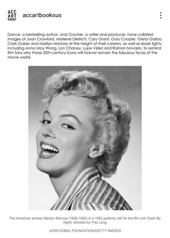 And finally, Fabulous Faces publisher ACC Art Books has two Marilyn-themed titles due later this year – including an Eve Arnold monograph, and Marilyn Monroe Style.