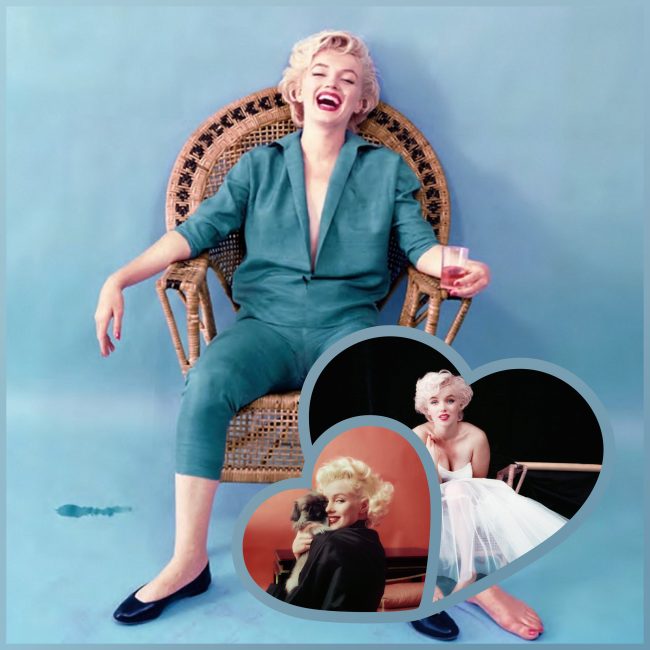 A relaxed image from the Wicker Chair Sitting – also shot in September 1954 – is featured alongside a somewhat ironic quote from Marilyn’s last interview: “I feel that beauty and femininity are ageless and can’t be contrived, and glamour, although the manufacturers won’t like it, can’t be manufactured …”