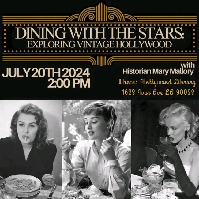 The Hollywood Library is hosting a special presentation, Dining With the Stars, on Ivar Avenue in Los Angeles this Saturday, July 20, at 2 pm.