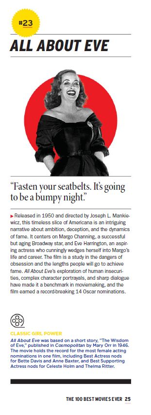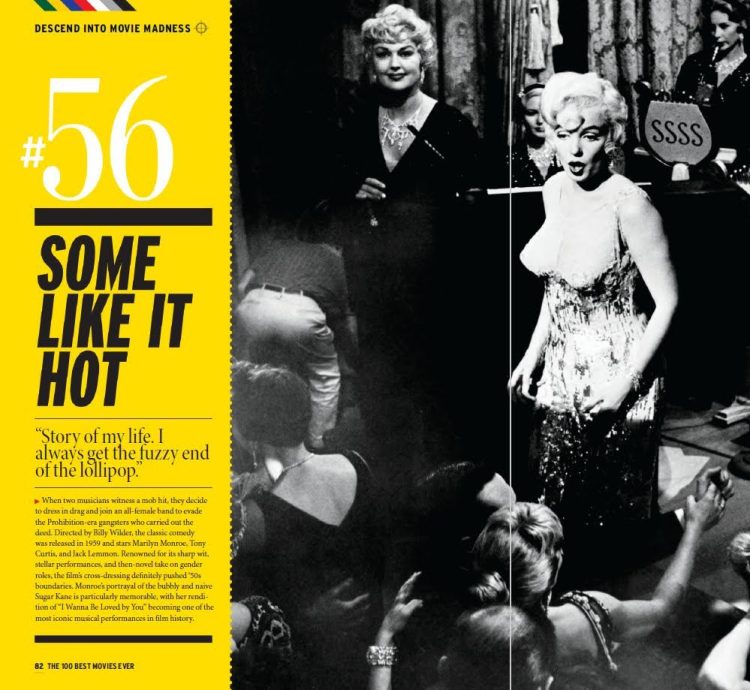 Two of Marilyn’s films are featured in The 100 Best Movies of All Time, a ‘bookazine’ special released in the US earlier this year – with Some Like It Hot in 56th place, and All About Eve ranked 23rd overall.