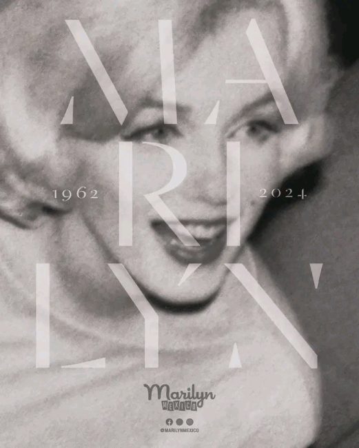 Sergio Serrano, who designed the stunning banner for Marilyn Remembered using a photo by Milton Greene, also created a graphic for Marilyn Mexico with a screenshot from archive during her visit in February 1962.