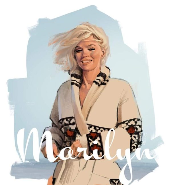 French artist Olivier Coulon took inspiration from one of Marilyn’s last shoots, with photographer George Barris on Santa Monica Beach in July 1962.
