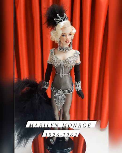 Polish-born artist Adam Marciniak, now based in Bedfordshire, gave a sneak preview of his latest creation for Jean Norman Dolls, in tribute to the original costume for Marilyn’s ‘Diamonds Are a Girl’s Best Friend’ number. (Deemed too risqué for the screen, the bejewelled bodystocking was swapped with Travilla’s iconic pink sheath gown.)