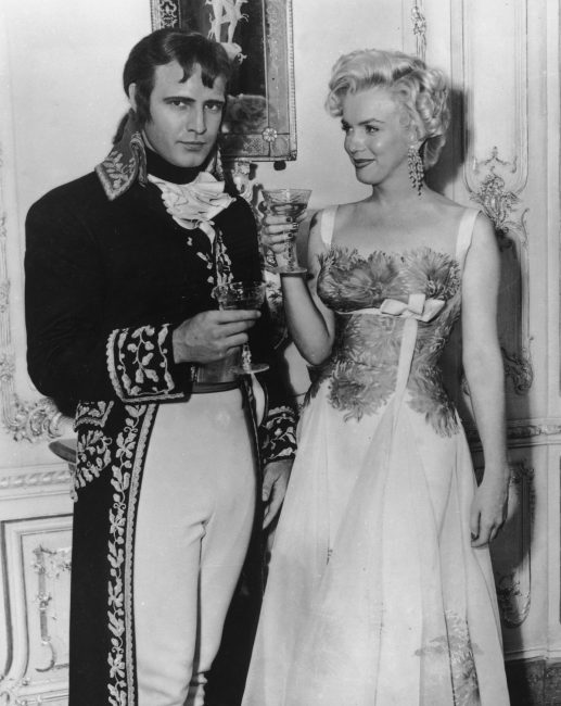 Marilyn had visited Marlon on the set of Désirée in 1954, and they were snapped together by Magnum photographer Dennis Stock. Brando was in costume for his role as Napoleon Bonaparte, while Marilyn wore her gown from the ‘A Man Chases a Girl (Until She Catches Him)’ number in There’s No Business Like Show Business, which was also in production at Twentieth Century-Fox.