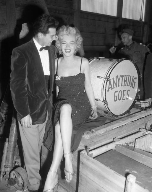 Marilyn with Cpl. Al Guastafeste, of Uniondale, Long Island, a pianist who led ‘Anything Goes,’ the five-piece band that played during her Korea appearances.