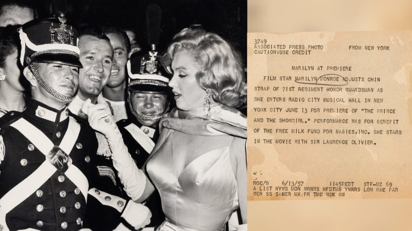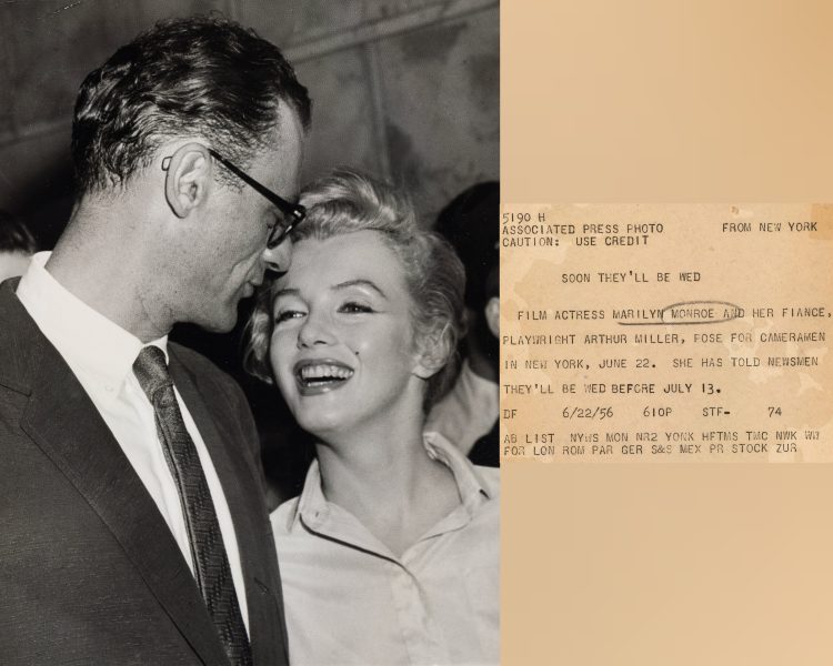 Sold for $3,250, Weegee’s 1949 photo attracted the highest bid among the Marilyn-related items, coming second overall to a set photo from Star Wars: A New Hope (1977.) This 1952 photo by Gene Kornman of Marilyn – from her famous ‘potato sack’ shoot, and sent to the Los Angeles Daily Mirror – fetched $2,250, taking fifth place. You can view more results here.