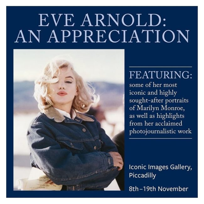 “Iconic Images Gallery in Piccadilly will be exhibiting Eve Arnold: An Appreciation, showcasing the diversity and depth of the Eve Arnold archive. The exhibition will feature some of her most iconic and highly sought-after portraits of Marilyn Monroe, as well as highlights from her acclaimed photojournalistic work, covering Malcolm X and the vibrant community of 1950s Harlem, Queen Elizabeth II, and the landscapes and lives of peasant farmers in late-1970s China.”