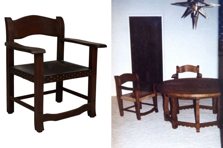 Two Spanish-style wooden armchairs purchased by Marilyn in Mexico for her final home at Fifth Helena Drive in Brentwood, Los Angeles in February 1962. The consignor acquired these chairs at an estate sale where he was told that the recently deceased owner had purchased it directly from the Nunez family sometime in the 1970s – the Nunez family having bought Marilyn’s Brentwood house and many of its contents after she died.