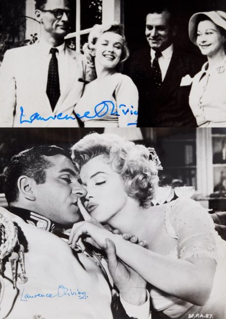 And finally, this four-day event also includes a day-long sale of over 400 items from the collection of Sir Laurence Olivier and his widow, Dame Joan Plowright, on Tuesday, December 10. Among his personal effects were two signed photos featuring Marilyn. The first shows her with husband Arthur Miller, being welcomed by Olivier and wife Vivien Leigh at Parkside House in Surrey, where the Millers stayed for four months in 1956; and the second shows Monroe and Olivier in a love scene from The Prince and the Showgirl.