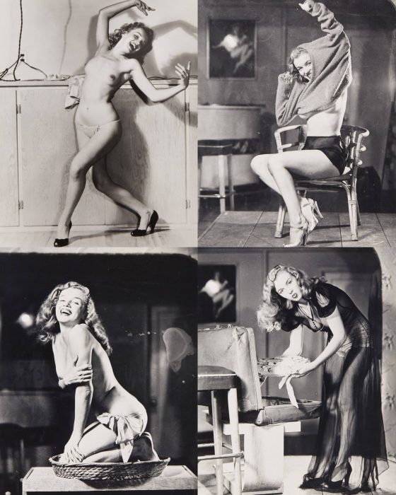 A set of 1970s prints of Marilyn, photographed by Earl Moran. Unpublished in her lifetime, the images inspired Moran’s pin-up calendar illustrations in the late 1940s.