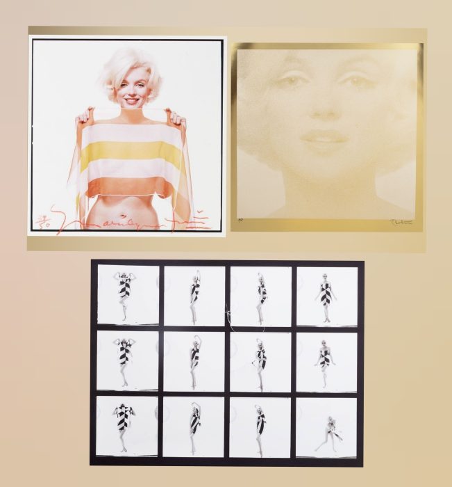 A 2012 print from Marilyn’s final studio sitting for Bert Stern; a 1980s ‘gold foil’ poster proof; and a contact sheet print, all signed by the photographer.