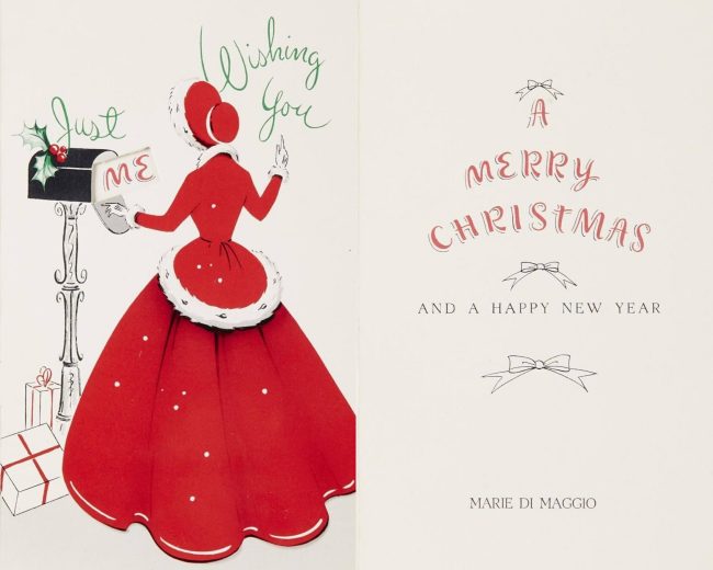 A Christmas card from Marie DiMaggio, Marilyn’s sister-in-law from her second marriage to Joe DiMaggio.