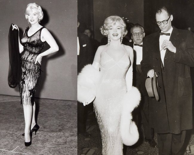 A costume test for Some Like It Hot; and the Millers, photographed by Paul Schumach at the New York premiere on March 29, 1959.