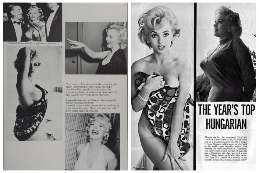 Fortunately, the photographs in Luijters’ book are authentic, with one exception: the curvaceous blonde woman in a bath-towel – shown at left on P.27 of the English edition – is not Marilyn, but Hungarian actress Eva Six. (This mistake has provoked a lot of fan debate over the years!)