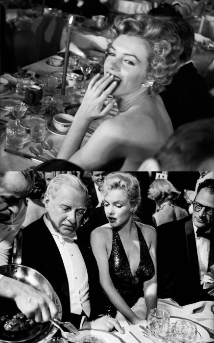 Another LIFE photographer, Loomis Dean, documented Marilyn’s 1952 appearance at the Look Magazine Awards in the Beverly Hills Hotel; and in 1957, Peter Stackpole photographed her dining with husband Arthur Miller and financier Winthrop W. Aldrich during the April in Paris Ball at New York’s Waldorf-Astoria Hotel.