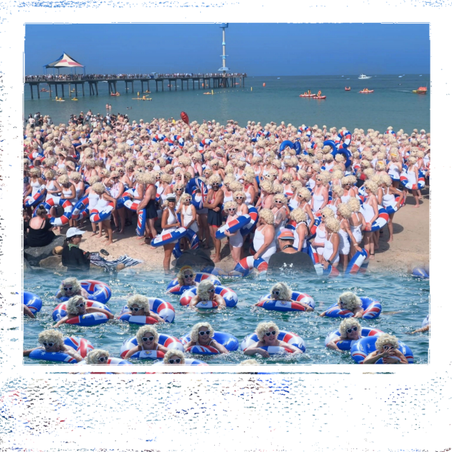 Every year the event sees hundreds of South Australians swim or paddle 400 metres around Brighton Jetty while dressed head to toe as 50s Hollywood icon Marilyn Monroe. All the money raised through the Marilyn Jetty Swim goes toward Cancer Council SA to fund prevention, research and support services.”