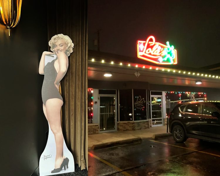 When Floyd’s Diner relocated in 2019, Canadian artist Paul Archer created another Marilyn mural – incidentally, based on the same image as the standee at Lola’s Hi/Lo Lounge. The original photo, celebrating Marilyn’s being named Miss N.A.S. San Diego in 1952, was shot by Frank Powolny (not ‘Bernard of Hollywood’, as credited on the standee.)