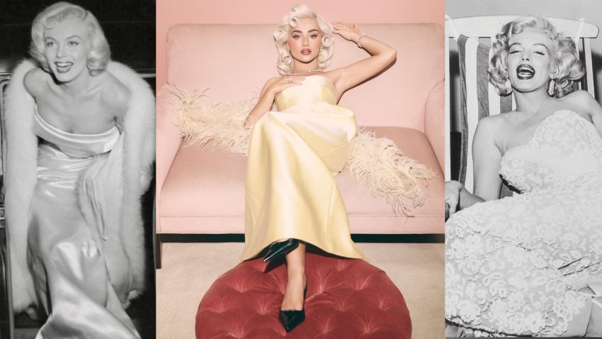 While Sabrina has once again leaned into bombshell glamour, her latest photo shoot doesn’t evoke Marilyn particularly, other than a sartorial nod to her Travilla gown seen at the Call Me Madam premiere – a white satin variant on the pink ‘diamond dress’ from Gentlemen Prefer Blondes, which Sabrina referenced in a performance of ‘Buy Me Presents,’ the opening number from her recent Netflix special, A Nonsense Christmas.