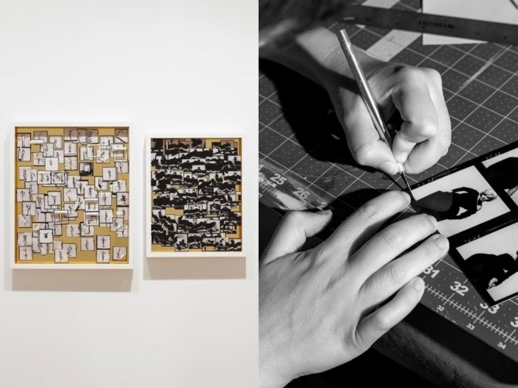 “In her new suite of collages for the Boren Banner Series, Natalie Krick deconstructs pictures of Marilyn Monroe. Using contact sheets from commercial photographer Bert Stern’s The Complete Last Sitting (a book of 2,600 photos taken for Vogue magazine six weeks before the actress’s death), Krick separates the images from the book’s eroticised language. She then obscures them by masking, layering, and applying cut-out patterns—interventions that complicate the voyeuristic viewing the book imposes on its iconic subject.