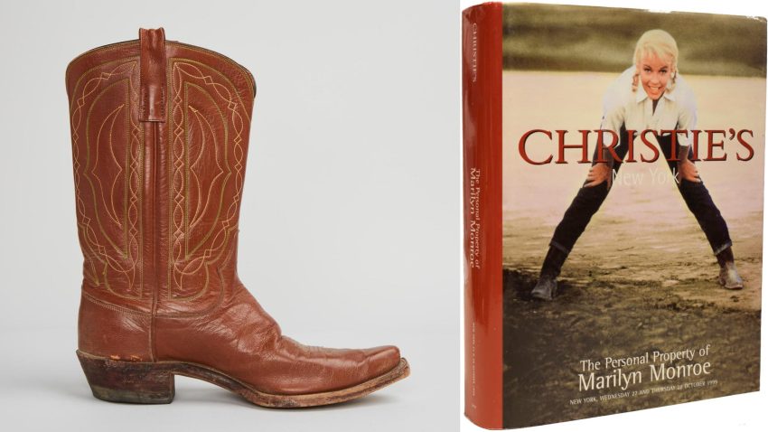 Continuing with the Western theme, Marilyn’s Hyer cowboy boots – worn for her role in The Misfits (1961), and purchased by Hilfiger for $85,000 at Christie’s in 1999 – will also go under the hammer on Thursday.
