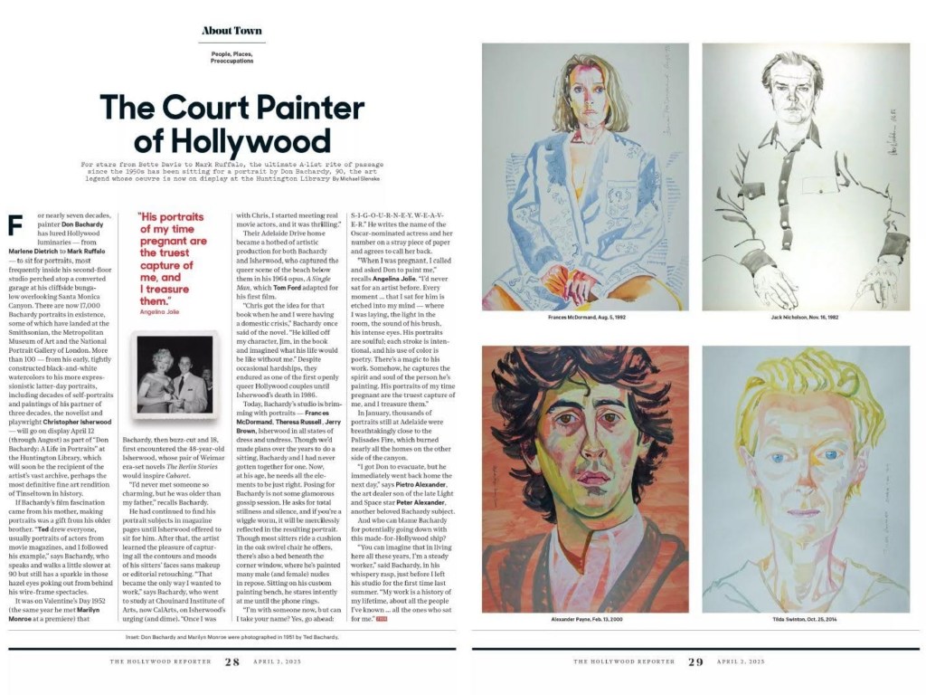 Artist Don Bachardy is profiled in the latest issue of The Hollywood Reporter (dated April 2), ahead of a major retrospective at The Huntington in San Marino, California, showcasing what journalist Michael Slenske describes as “perhaps the most definitive fine art rendition of Tinseltown in history.”